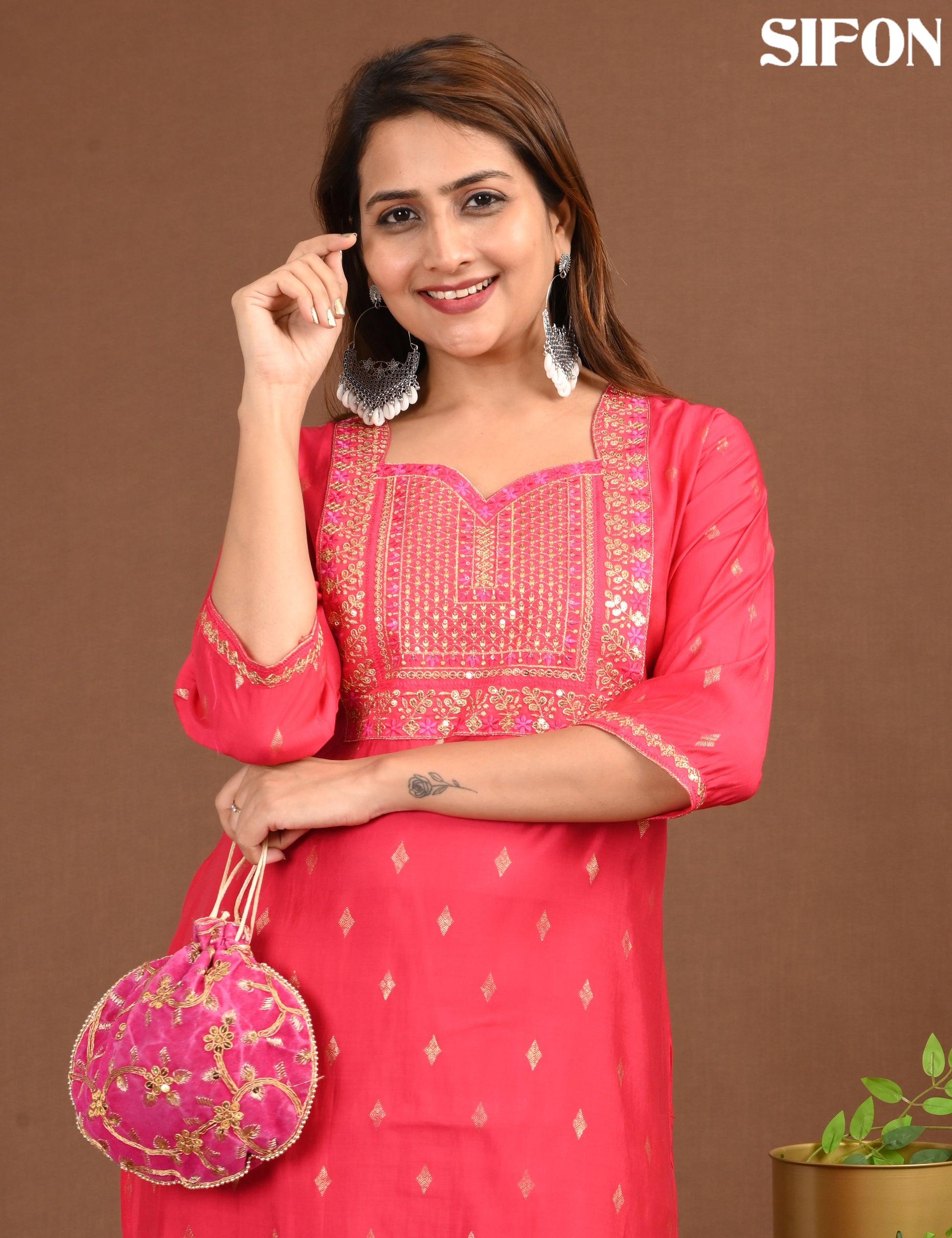 "Designed for modern women, the SIFON ROMAN SILK BIG EMBROIDERY offers timeless elegance and reliable comfort."